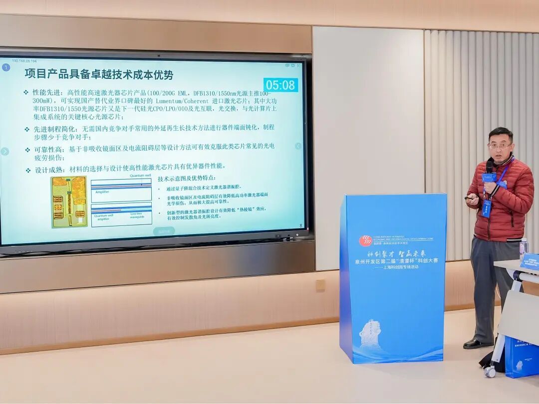 8个具有高成长性的项目代表围绕技术突破点、市场应用场景、团队核心优势及落地规划等内容进行路演,并因技术前沿、根基扎实且产业化潜力强,得到了专家评审团的高度评价,评审专家还立足资本、产业与技术多维视角,为项目未来在泉州开发区的落地生根提供了专业化建议。值得一提的是,经过前期调研和现场深度对接,具有高性价比光刻材料AR显示项目和全场景智能瞄控两个项目明确落地开发区意向。此外,国产自主给药医疗器械、低空森林灭火精准识别一批优质项目持续对接中。